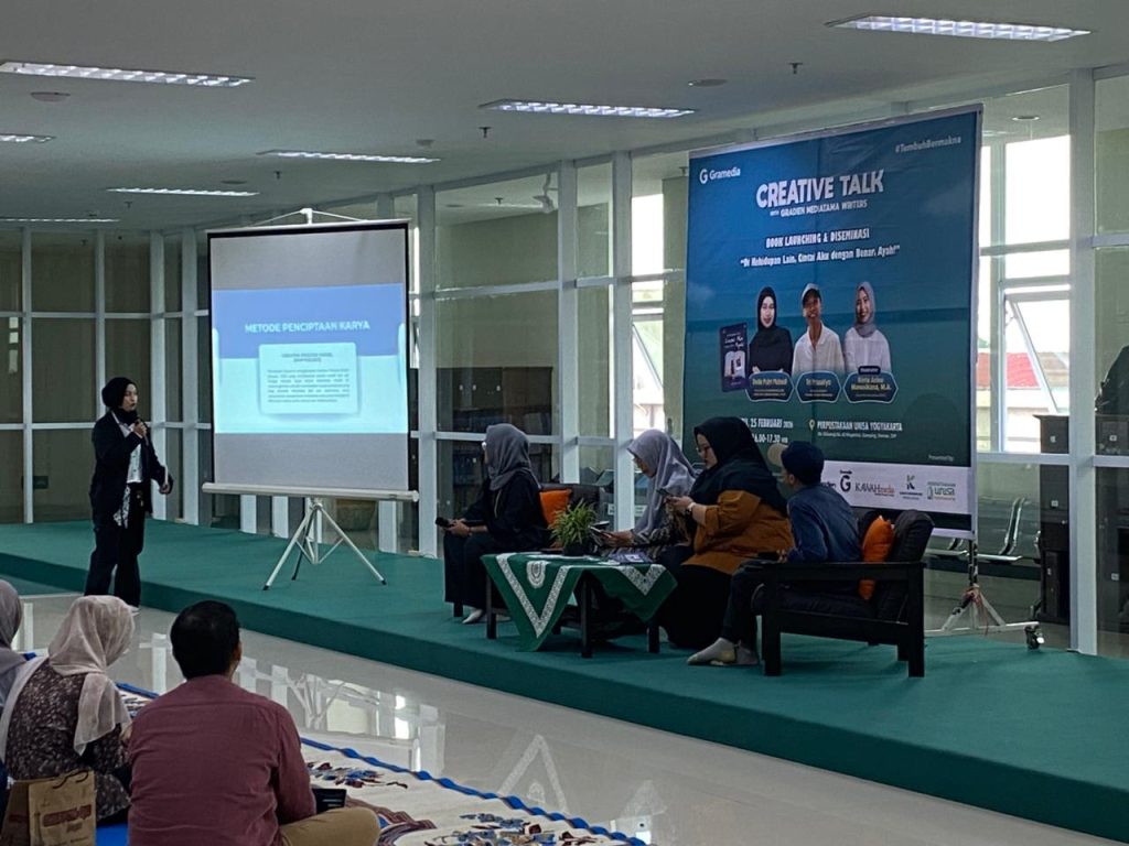 Program Studi Ilmu Komunikasi bekerja sama dengan Perpustakaan Universitas ‘Aisyiyah Yogyakarta dan Gradien Mediatama Writers menyelenggarakan Creative Talk, Bedah Buku, dan Book Launching buku “Di Kehidupan Lain, Cintai Aku dengan Benar, Ayah!” pada Rabu, 25 Februari 2026 di Perpustakaan UNISA Yogyakarta. Kegiatan ini dikemas dalam konsep Bedah Buku sambil Buka Bersama di Perpustakaan (BUKBERPUS#9), yang memadukan diskusi literasi dengan kebersamaan Ramadan. Mengusung format creative talk, acara tidak hanya menjadi momentum peluncuran buku, tetapi juga menghadirkan dialog inspiratif mengenai proses kreatif penulisan, dinamika penerbitan, serta makna emosional yang terkandung dalam karya tersebut.