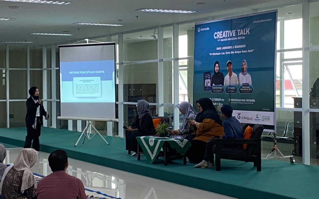 Program Studi Ilmu Komunikasi bekerja sama dengan Perpustakaan Universitas ‘Aisyiyah Yogyakarta dan Gradien Mediatama Writers menyelenggarakan Creative Talk, Bedah Buku, dan Book Launching buku “Di Kehidupan Lain, Cintai Aku dengan Benar, Ayah!” pada Rabu, 25 Februari 2026 di Perpustakaan UNISA Yogyakarta. Kegiatan ini dikemas dalam konsep Bedah Buku sambil Buka Bersama di Perpustakaan (BUKBERPUS#9), yang memadukan diskusi literasi dengan kebersamaan Ramadan. Mengusung format creative talk, acara tidak hanya menjadi momentum peluncuran buku, tetapi juga menghadirkan dialog inspiratif mengenai proses kreatif penulisan, dinamika penerbitan, serta makna emosional yang terkandung dalam karya tersebut.