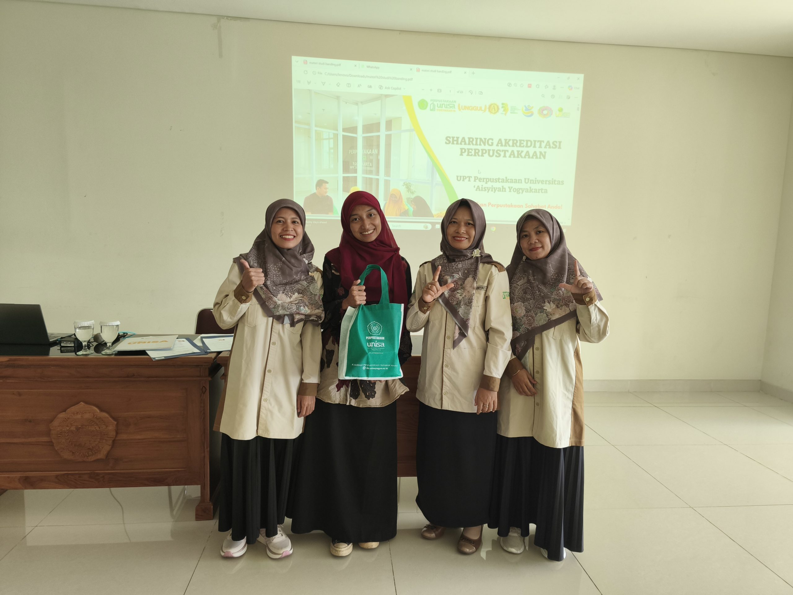 Perpustakaan Universitas ‘Aisyiyah Yogyakarta (UNISA Yogyakarta) menerima kunjungan studi banding dari Universitas Muhammadiyah Gresik (UM Gresik) dan Akademi Kesehatan Muhammadiyah (AKM) Temanggung dalam rangkaian kegiatan Open Day UNISA Yogyakarta. Kegiatan Open Day ini diikuti oleh empat perguruan tinggi. Namun, secara khusus kunjungan ke Perpustakaan UNISA Yogyakarta diikuti oleh dua institusi, yakni UM Gresik dan AKM Temanggung.