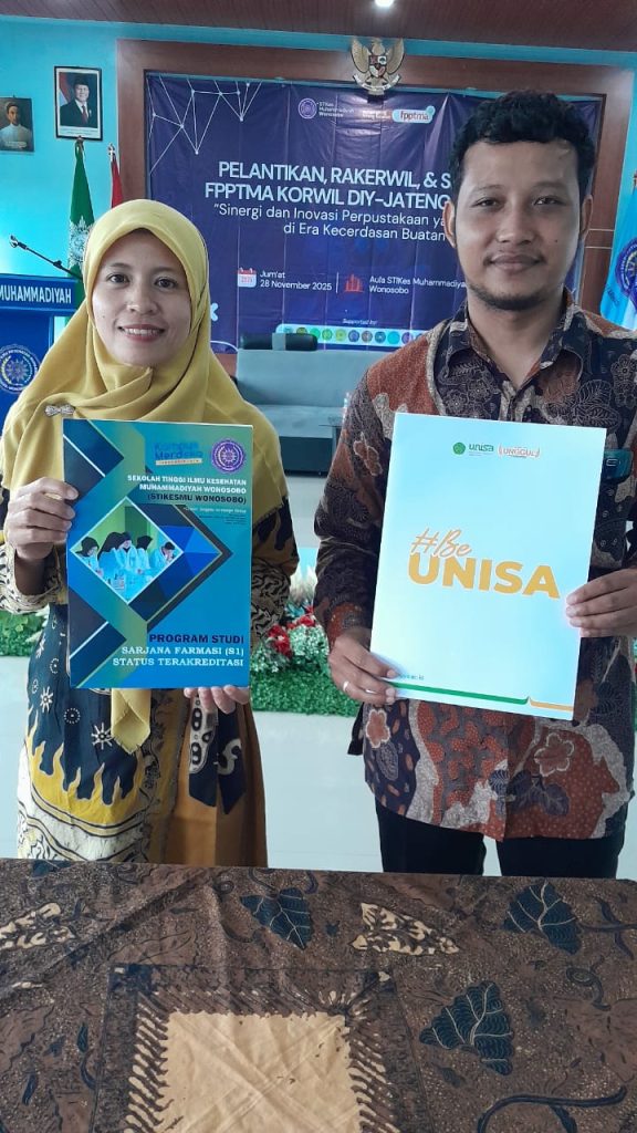 Pada hari Jum’at, 28 November 2025, Perpustakaan Universitas ‘Aisyiyah (UNISA) Yogyakarta melaksanakan penandatanganan Memorandum of Understanding (MoU) dengan Perpustakaan STIKes Muhammadiyah Wonosobo. Kegiatan tersebut berlangsung di Aula Lantai 3 STIKes Muhammadiyah Wonosobo dan menjadi bagian dari rangkaian acara Pelantikan, Rapat Kerja Wilayah (Rakerwil), serta Seminar FPPTMA Korwil DIY–Jateng Selatan yang diselenggarakan di tempat yang sama.