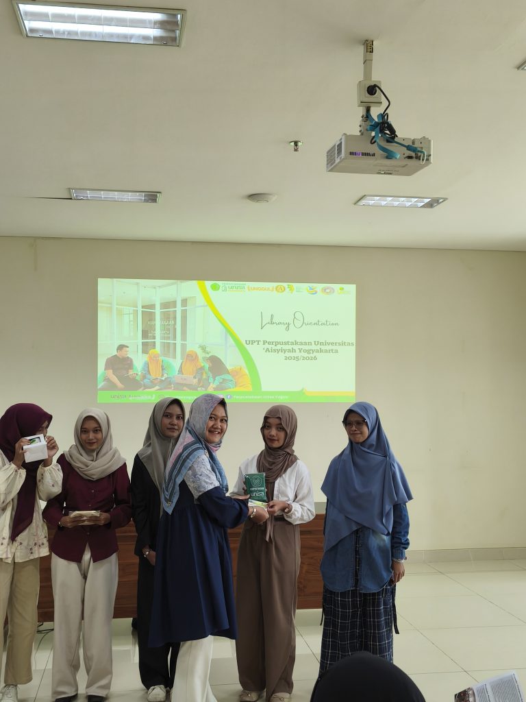 Sesi utama dibawakan oleh Ibu Dita Rachmawati, SIP., selaku Pustakawan Perpustakaan UNISA Yogyakarta. Beliau memaparkan mengenai berbagai layanan, koleksi, dan fasilitas digital yang tersedia. Mahasiswa juga diperkenalkan dengan beragam sumber informasi seperti buku cetak, e-book, jurnal nasional dan internasional, hingga database ilmiah yang dapat diakses melalui portal perpustakaan. Tidak hanya mendengarkan materi, peserta juga diajak praktik langsung untuk menelusur koleksi, mengakses e-journal, serta menginstal aplikasi e-Library UNISA agar dapat dimanfaatkan kapan saja dan di mana saja.