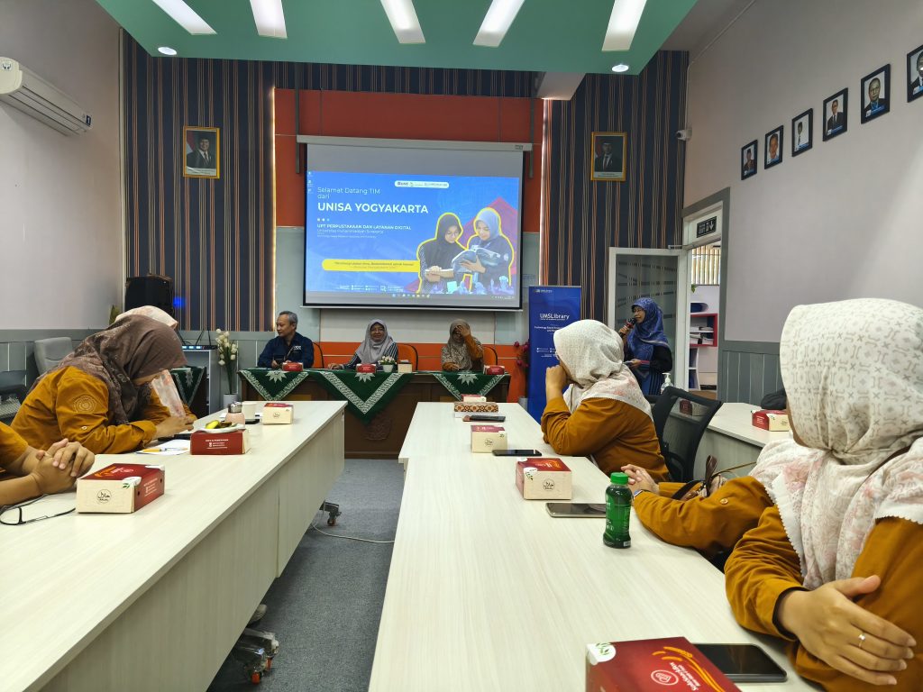 Perpustakaan Universitas ‘Aisyiyah (UNISA) Yogyakarta melaksanakan kegiatan benchmarking ke Perpustakaan Universitas Muhammadiyah Surakarta (UMS) pada Sabtu, 31 Januari 2026. Kegiatan ini dilakukan sebagai bagian dari upaya peningkatan pengelolaan layanan perpustakaan menuju proses reakreditasi. Kegiatan ini diikuti oleh UPT Perpustakaan UNISA Yogyakarta dengan dukungan Biro Akademik dan Biro Admisi sebagai unit pendukung layanan institusi. Rombongan UNISA Yogyakarta disambut oleh jajaran unit kerja terkait di lingkungan UMS dan dipusatkan di Perpustakaan UMS sebagai lokasi utama kegiatan.